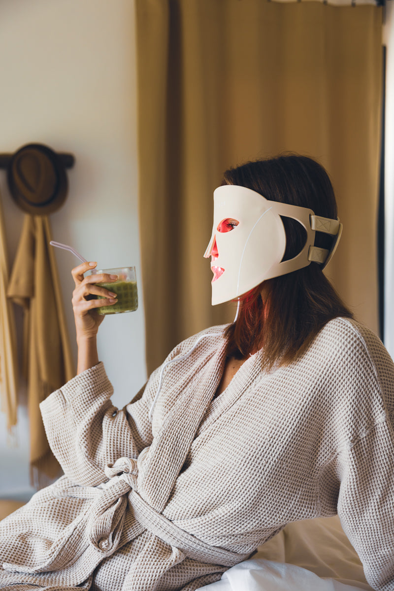 LED-masken bruker kliniske bølgelengder som er bevist effektive for fastere og glattere hud.